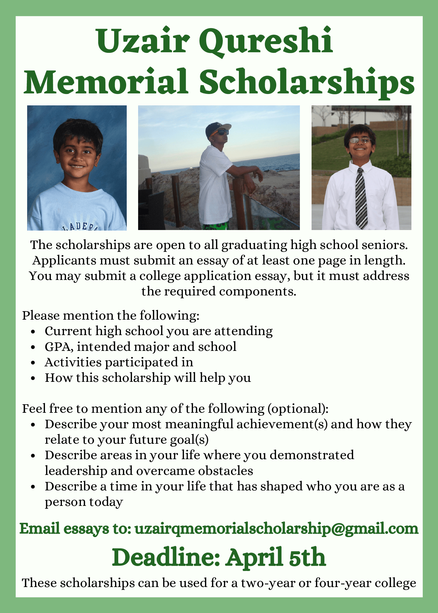 Uzair Qureshi Memorial Scholarship